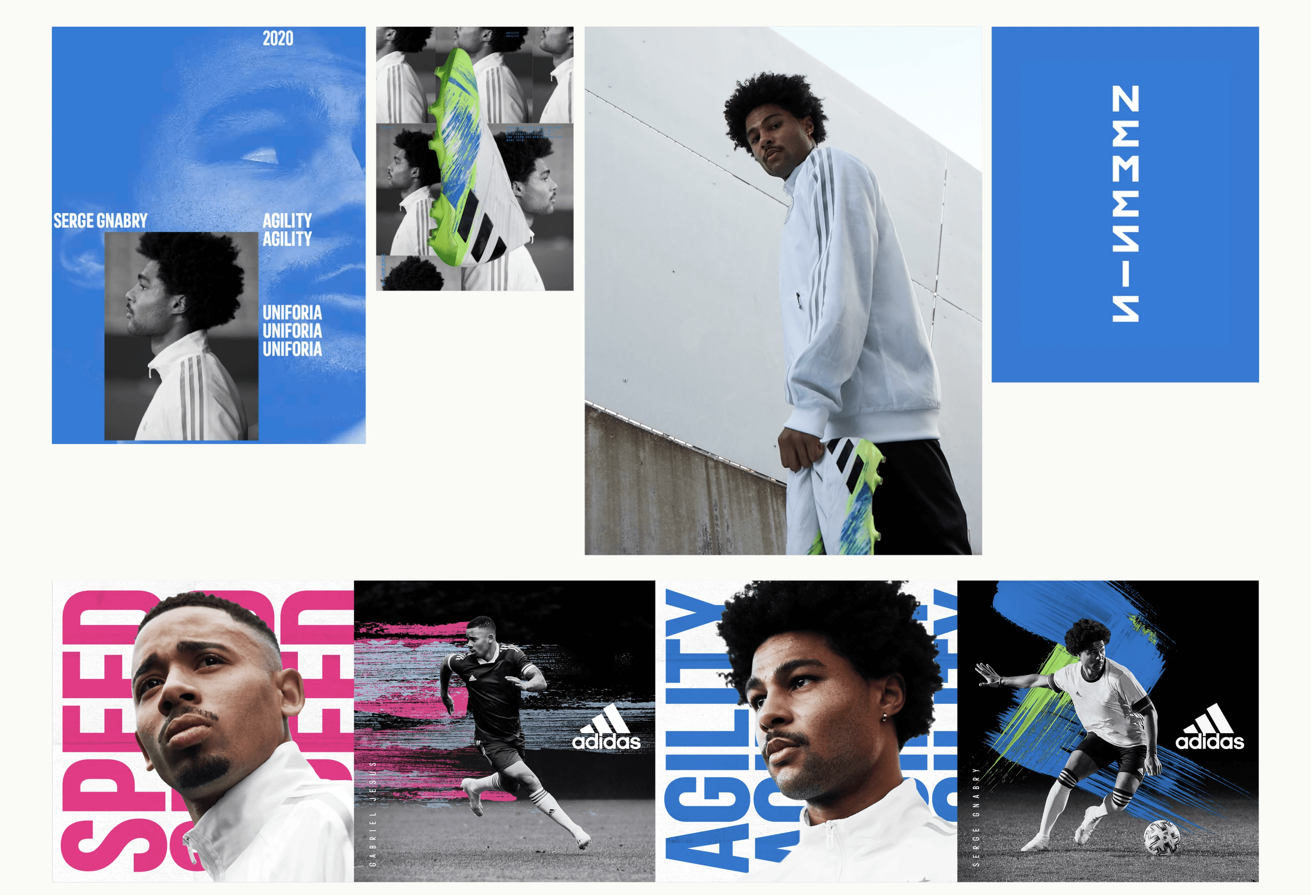 The Adidas Uniforia Pack SS20 project developed a visual language inspired by the principles of arts and crafts. The collection’s unique design elements featured handcrafted paint strokes, digitized through a blend of analogue and digital techniques, reflecting the raw, imperfect beauty found in both sports and art. The retail concept was transformed into a flexible global toolkit catering different global market realities. From small scale to flagship executions.